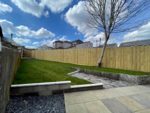 Showcasing a nice secure Feather edge fence and some freshly laid turf.